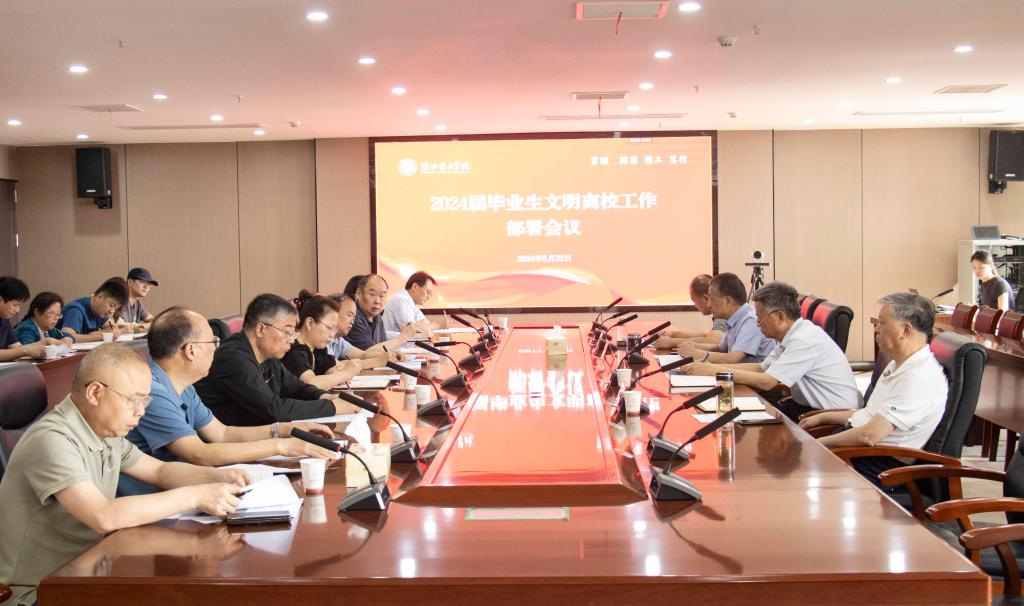 为扎实做好2024年毕业生文明离校工作,5月22日上午,beat365官网在行政楼814会议室召开2024届毕业生文明离校工作部署会。校领导、有关部门负责人、二级学院院长书记、副书记、书记助理及全体毕业班辅导员参加会议。会议由党委书记朱德顺主持。
