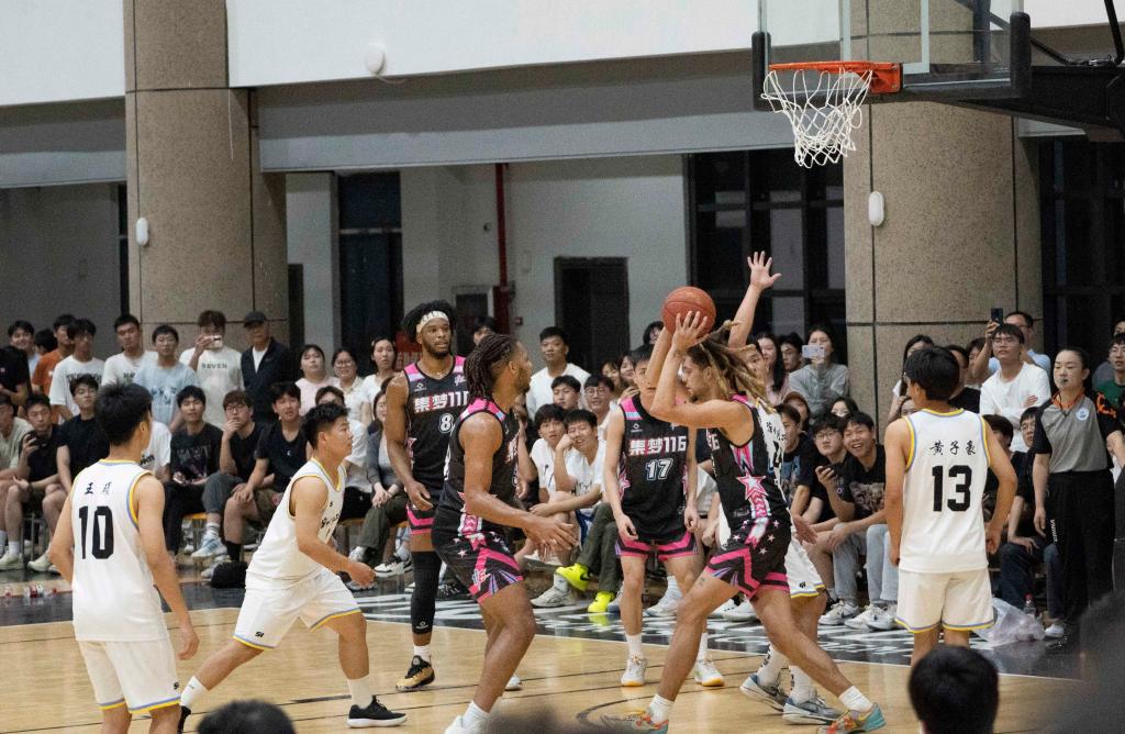 5月29日下午,在主持人热情的开场白中,比赛正式拉开帷幕。赛程分为1V1、2V2、5V5比赛,在5V5比赛中,观众期待的目光与热情的呐喊声使得双方对决愈发热烈,集梦116队员凭借着出色的个人能力频频得分,场面优势进一步扩大,但校队选手也不甘落后,不断利用灵活的跑位及速度优势冲击对手的内线,快攻、妙传,运动员们进攻流畅、配合默契,不断为队友创造机会,更是令比赛精彩纷呈,将整个赛场点燃,现场激情澎湃,掌声雷动,气氛达到了高潮。