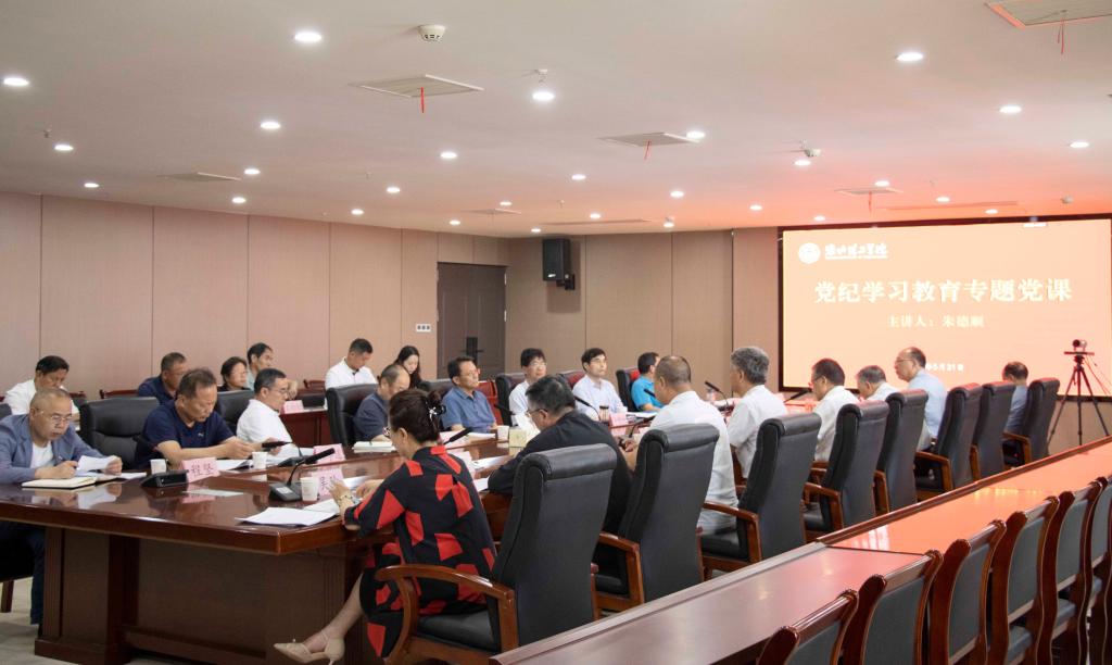 党委书记朱德顺以《全面加强党的纪律建设 营造风清气正育人氛围》为主题讲党课,围绕在弘扬党的优良传统中领悟纪律教育的深刻内涵、在学习教育中充分认识《条例》修订的重大意义和鲜明特点、在前后对照中深刻把握《条例》修订的重点内容、在深学细悟中贯彻纪律教育的实践要求四个方面结合工作实际,从强化示范引领、坚持严实作风、注重统筹兼顾三个部分,来阐述学习《条例》的重要性。