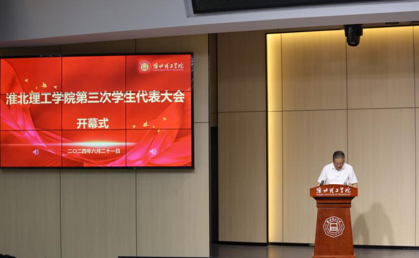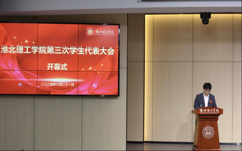 6月21日,beat365唯一官方网站第三次学生代表大会在行政楼报告厅召开。校党委书记朱德顺、安徽省学生联合会驻会执行主席汤静羽、校党建办主任付金沐、学生处处长孙增响、校团委全体成员和各二级学院团总支书记、副书记及200名学生代表出席大会开幕式。