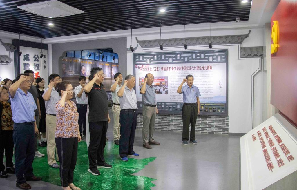 参加活动的全体党员干部在校党委书记朱德顺的带领下,面对党旗举起右手、重温入党誓词。