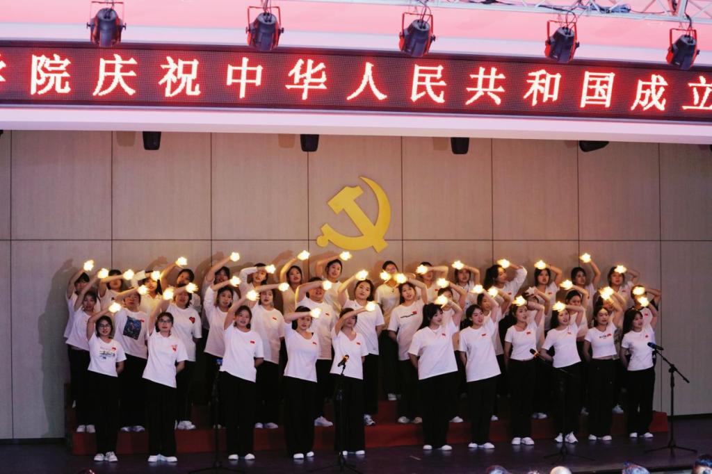 为庆祝中华人民共和国成立75周年,进一步激发全校师生的爱国热情,9月29日晚,学校庆祝中华人民共和国成立75周年歌咏比赛在行政楼报告厅隆重举行。校党委书记朱德顺,相关职能部门、二级学院负责人、各二级学院团总支书记、辅导员代表出席本次活动。