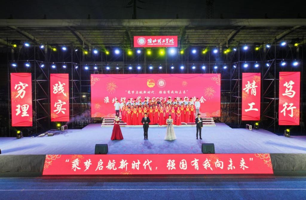 本场晚会分为梦想起航·新程开启、文化探索·精神启迪、未来展望·筑梦翱翔三个篇章。这不仅是一场视觉与听觉的盛宴,更是一场别开生面的美育思政课,引领学子们踏上一段激扬青春、厚植家国情怀的非凡旅程。光与影辉映交错,声与形交织碰撞。主题团课《有我》以淮北革命历史为主线,以创新形式增强淮理学子归属感和认同感。