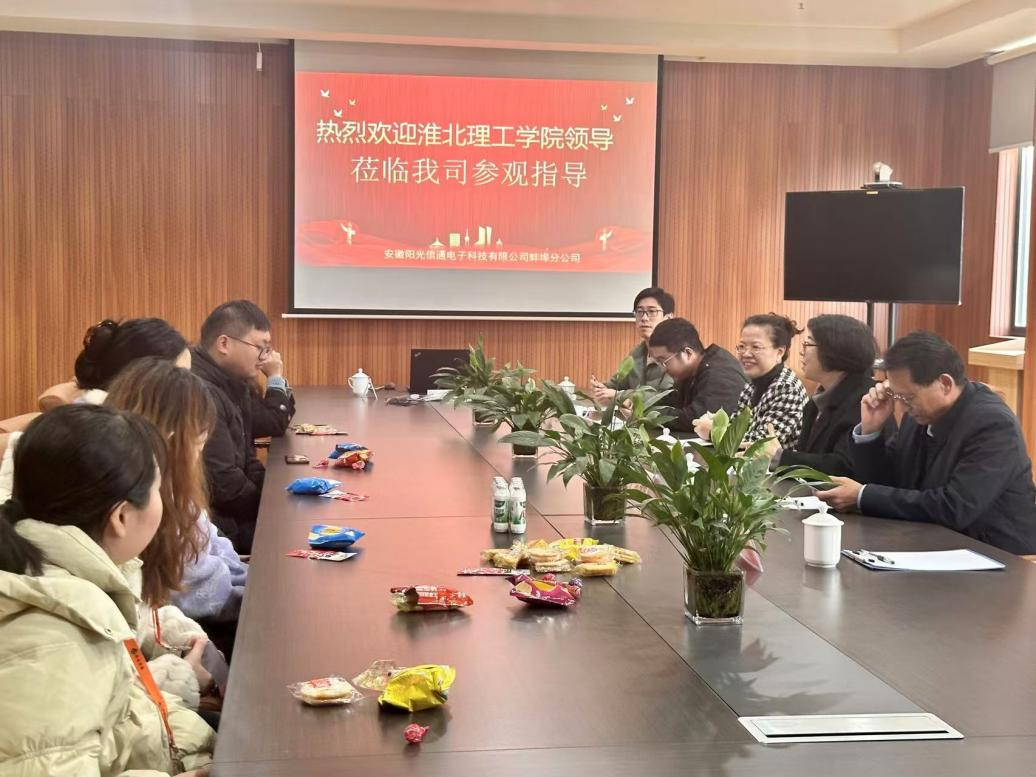 座谈会后,beat365官网一行前往安徽阳光信通电子科技有限公司蚌埠分公司,看望正在实习的经济与管理学院学生,详细了解他们的工作情况,并向学生们传达了学校的关怀与鼓励。