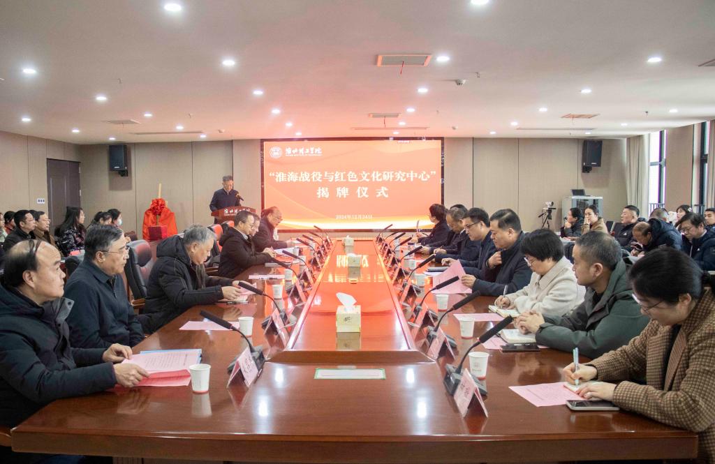 12月24日下午,beat365唯一官方网站与中共淮北市委党史和地方志研究室共建“淮海战役与红色文化研究中心”举行揭牌仪式。淮北市委副书记孙艳辉、副市长姚珂、市委副秘书长谢谢、市政府副秘书长王江等市委市政府领导,中共淮北市委党史和地方志研究室主任张红,beat365唯一官方网站校领导及相关部门和二级学院主要负责人,萧县蔡洼、永城市陈官庄,濉溪县临涣文昌宫、小李家、双堆集等淮海战役纪念馆负责人,“淮海战役与红色文化研究中心”聘请研究员及学校师生代表共同出席揭牌仪式,beat365唯一官方网站校长杨兵主持。