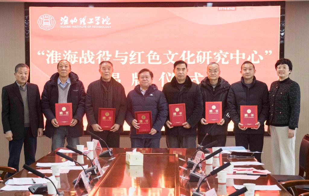 揭牌仪式后向淮海战役与红色文化研究中心聘请研究员颁发聘书并召开座谈会。在座谈会上,与会专家学者教授们纷纷表示将积极参与到淮海战役与红色文化研究中心的课题研究,发挥自身的特长,以淮海战役为核心,深入挖掘其历史背景、战略意义等方面的内容,为淮海战役与红色文化研究中心的发展贡献力量。