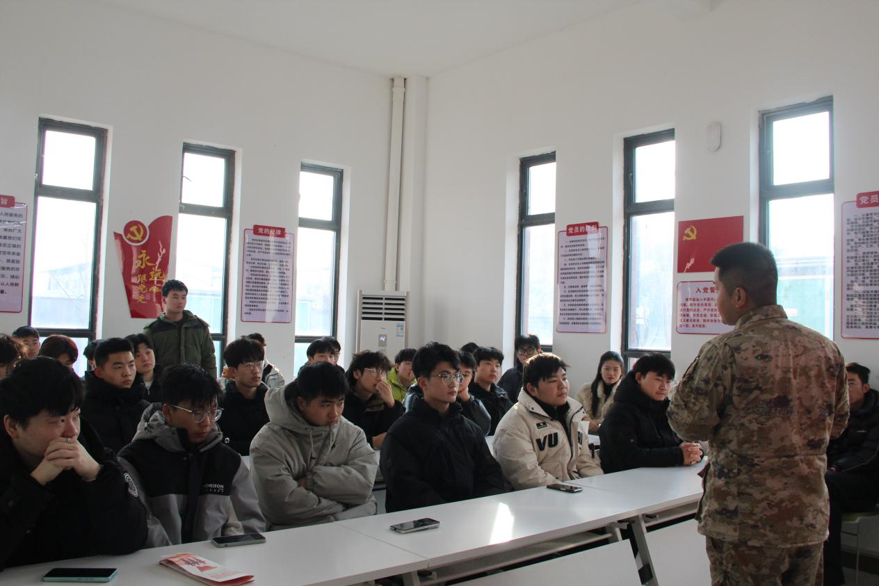 宣讲会上,张海鹏参谋结合自身从军经历,生动讲述了在部队中的日常训练、执行任务以及成长蜕变的故事。同时,他还从优待政策、入伍条件、应征流程及军队常见工作等方面进行了全面介绍,详细阐述了国家为鼓励大学生参军出台的学费补偿、考研加分、就业服务等一系列优惠政策,激发了学生们对军营生活的向往,并鼓励学生们将个人理想融入国家发展大局,为实现民族复兴贡献青春力量。