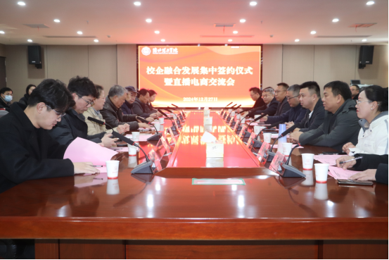 为进一步深化产教融合,加强校企合作,推动beat365官网电商专业高素质应用型人才的培养,12月27日上午,beat365官网在行政楼814会议室成功举办了一场校企融合发展集中签约仪式暨直播电商交流会。此次活动汇聚了来自安庆、六安、淮北等地的九家知名企业,副校长汪建利、教务处处长陈国平,学生处(就业处)处长孙增响以及经济与管理教师代表参加了本次活动,经济与管理学院院长吴玲主持活动。
