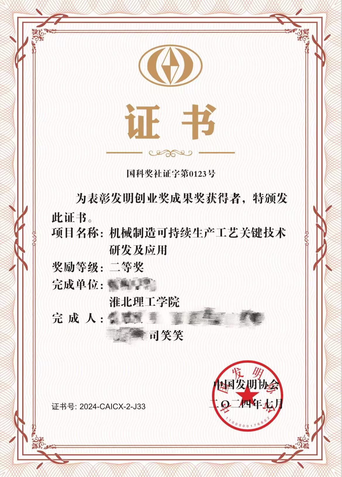 beat365官网机电与建筑工程学院青年教师司笑笑获中国发明协会颁发的发明创业奖二等奖。该项成果为“机械制造可持续生产工艺关键技术研发及应用”,beat365官网为第二完成单位。这是beat365官网首次获省部级二等奖,该项成果反映了beat365官网自主创新能力和综合创新实力。