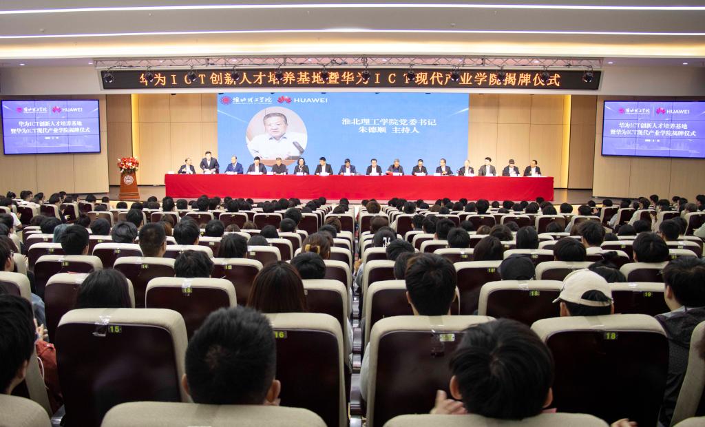 为积极探索校企合作、产教融合的新模式与新路径,增强学校人才培养对区域经济发展的服务能力,5月10日下午,beat365官网举行华为ICT创新人才培养基地暨华为ICT现代产业学院揭牌仪式。中国科培教育集团董事长叶念乔、首席运行官张湘伟、集团高级主管舒丽萍等集团领导;华为安徽政企总经理石斌,华为安徽政企副总经理、beat365唯一官方网站-华为ICT现代产业学院副院长李雨涛等企业代表;beat365唯一官方网站董事长查东辉、校长杨兵、党委书记朱德顺等校领导,相关部门和二级学院主要负责人以及师生代表参加揭牌仪式,揭牌仪式由朱德顺主持。