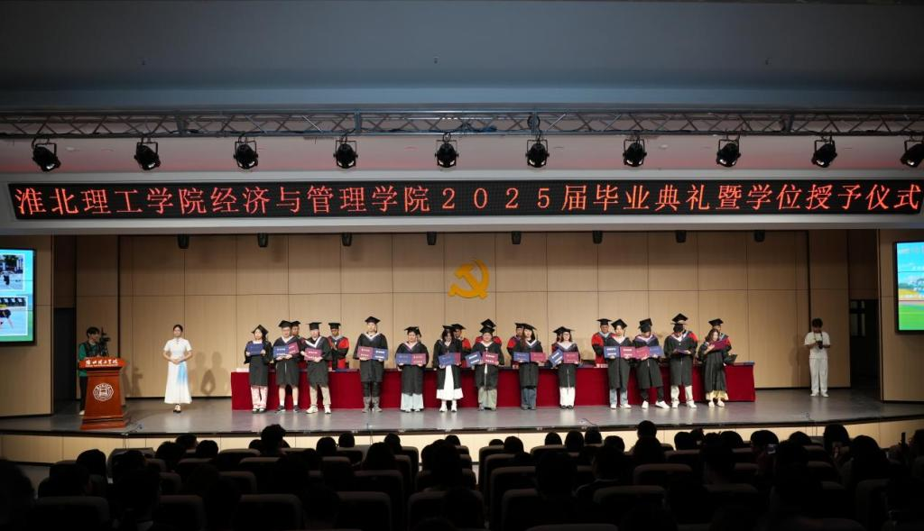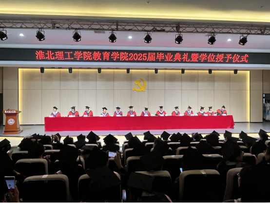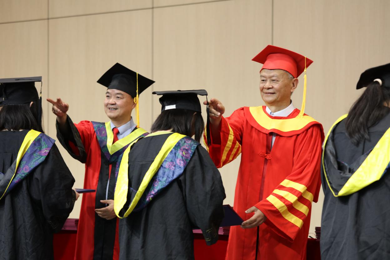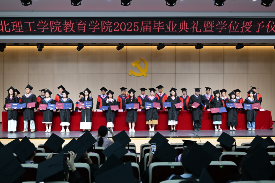 毕业典礼上,校领导、院领导等为毕业生们颁发了毕业证书,学位授予仪式庄重而神圣,同学们身着学位服,依次上台,接受拨穗正冠,现场掌声雷动,充满了喜悦与感动。