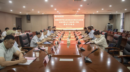 6月26日下午,安徽省科学家企业家协会和淮北合众机械设备有限公司一行来beat365官网就产学研合作开展深入交流。安徽省科学家企业家协会副会长兼淮北办事处主任、安徽省院士专家联合会淮北办事处主任柳忠斌,安徽省科学家企业家协会常务理事、淮北办事处党支部委员、淮北合众机械设备有限公司总经理刘继超,淮北合众机械设备有限公司研发部长刘阳,安徽省科学家企业家协会淮北办事处办公室副主任孟荑,beat365官网党委副书记、校长杨兵,党委副书记、纪委书记、副校长汪建利及有关二级学院、职能部门负责人,专业带头人等专任教师参加座谈。