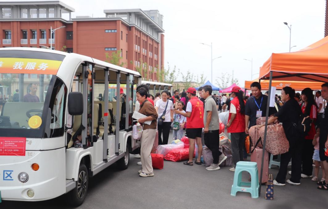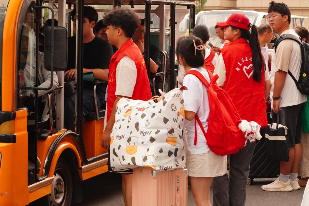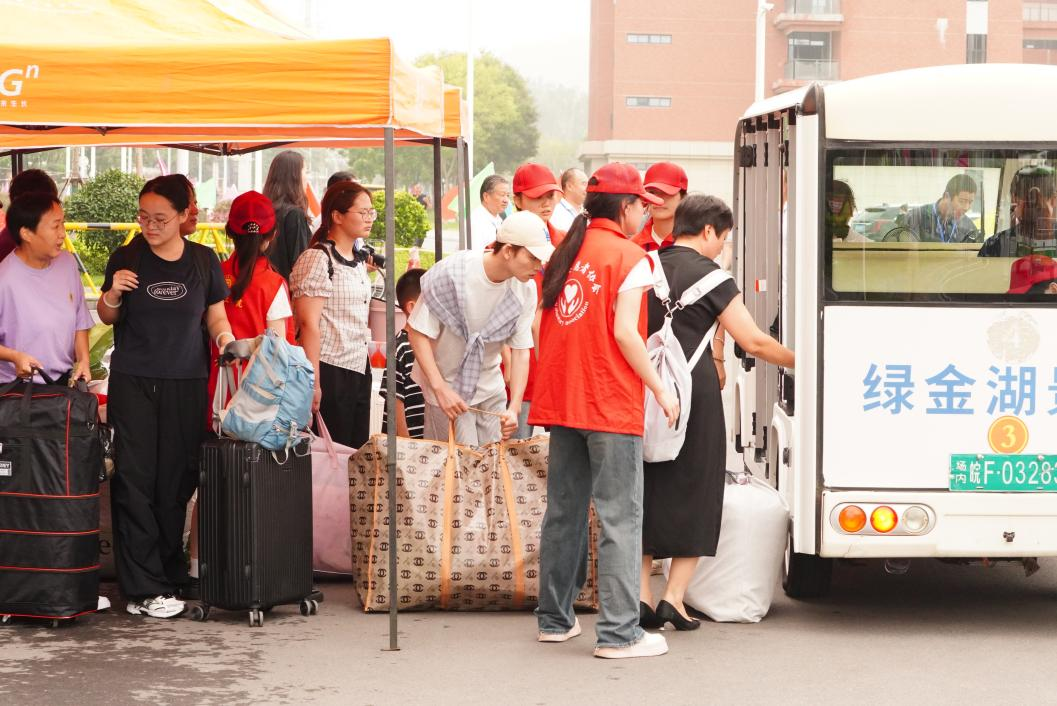 迎着清晨的蒙蒙细雨,学生志愿者和老师们早早从学校出发,前往火车站、汽车站等各个接待站,热情等候新生到来,引导新生及家长们有序乘车,将其安全送到学校;校内,志愿者的微笑与贴心服务无处不在,到处可见穿梭忙碌在现场的志愿者们,他们为新生指引方向、提拿行李、答疑解惑,充当起肩挑者、答疑者、引路者的职责,分工明确、有条不紊;新生报到期间,校门外交通承受极大压力,学校积极协调交警,对学校南大门进出口进行现场交通疏导,做好突发事件应急处置,保障新生安全入学。