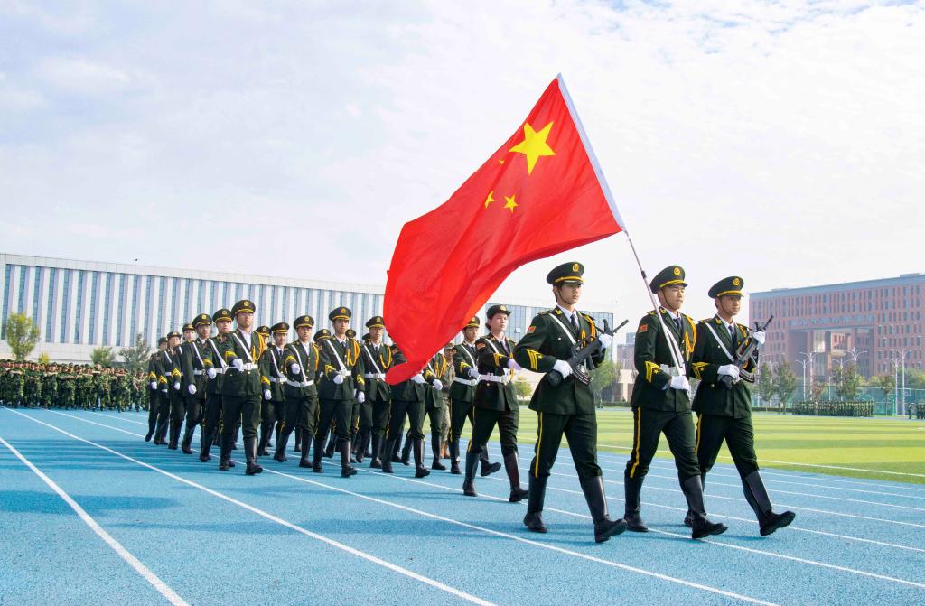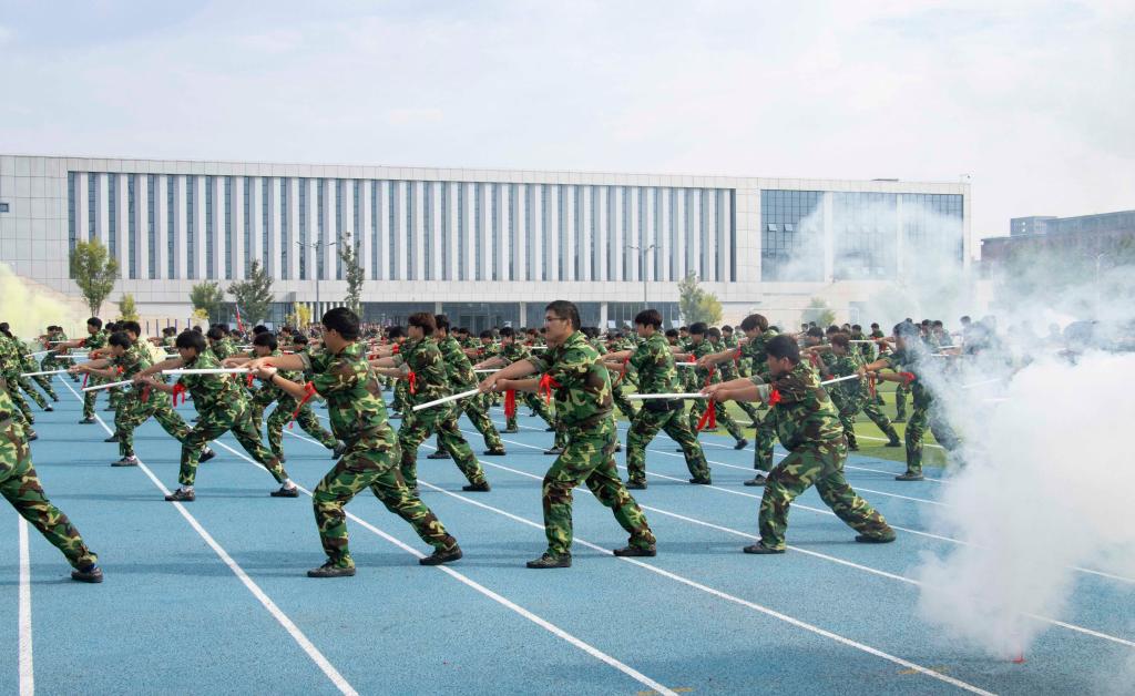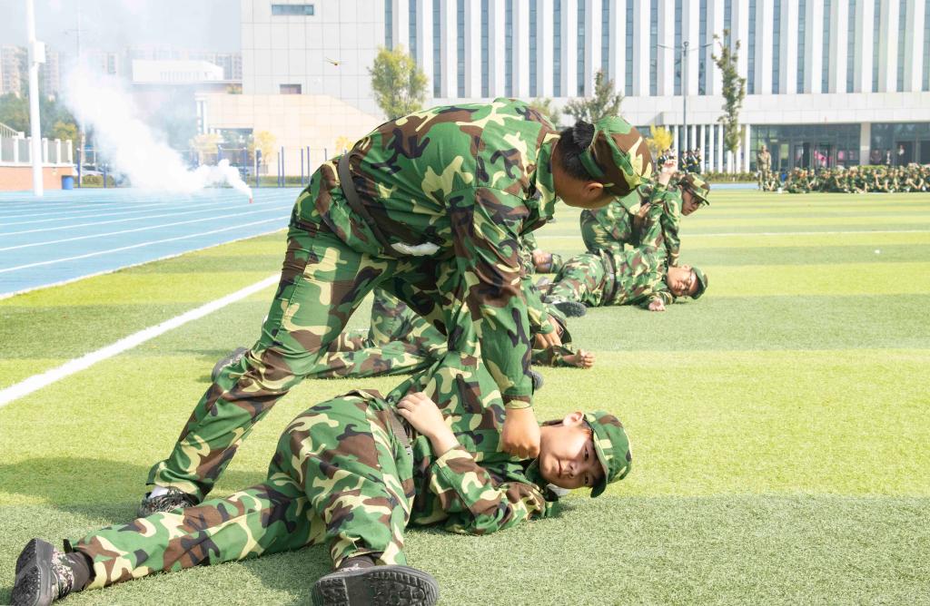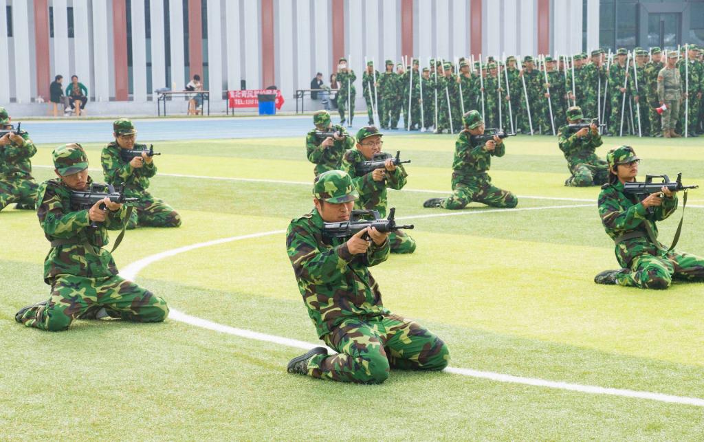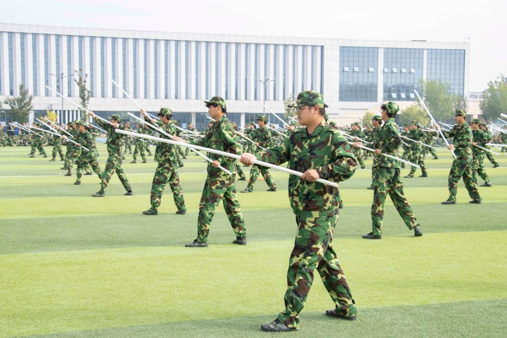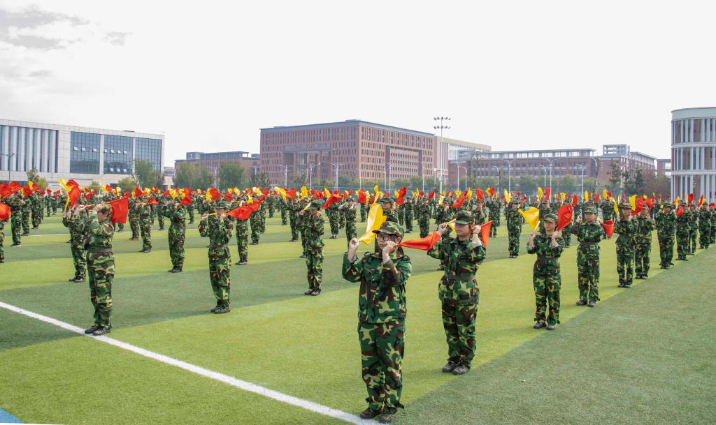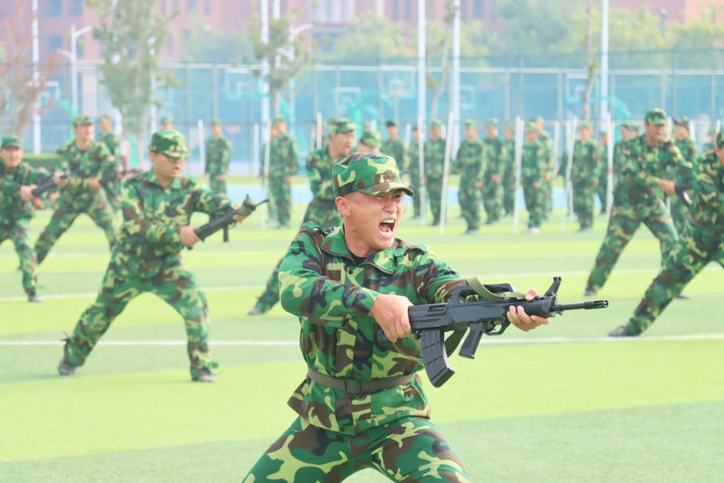 接着,军训汇报演出成了全场关注的焦点。由各院系或班级组成的方队,在教官的带领下,踏着整齐的步伐,喊着嘹亮的口号,依次经过主席台接受检阅。方队成员身着统一的迷彩服,精神抖擞,动作整齐划一,用挺拔的身姿、坚定的目光,向大家呈现了军训的成果,从他们身上,我们看到了汗水与坚持,体会到了青春的朝气与力量。国旗护卫队方阵的同学们身姿挺拔,步伐矫健,手中紧握的五星红旗在微风中轻轻飘扬,象征着祖国的繁荣与昌盛,他们用实际行动诠释着“少年强则国强”的深刻内涵;破锋八刀方阵的同学们刀起是飒爽,刀落是坚定,一招一式,刚劲有力,用行动书写着属于迷彩青春的独特篇章;战术方阵的同学们精神抖擞,他们动作同步、气势如虹,每一个动作都利落干净,坚决认真,一声声呐喊发自肺腑,一招一式都更显勇敢自信,青年力量在此刻具象化;匕首操与应急棍方阵的同学们利落地挥舞匕首和棍棒,刺、闪、挥、劈、挡,招招凌厉;闪、转、腾、挪、踢,身形灵巧,一招一式都是短兵相接、近身肉搏的实战技巧,尽显飒爽英姿;旗语方阵的同学们以旗为语,用标准动作诠释纪律与协作,挥臂、展旗、交叉、定位,每一个动作都干净利落,每一次声响都铿锵有力,这不仅是力与美的视觉盛宴,更是一场无声的信息传递。在全体同学的共同努力下,全场师生共同观看了一场盛大精彩的视觉盛宴。