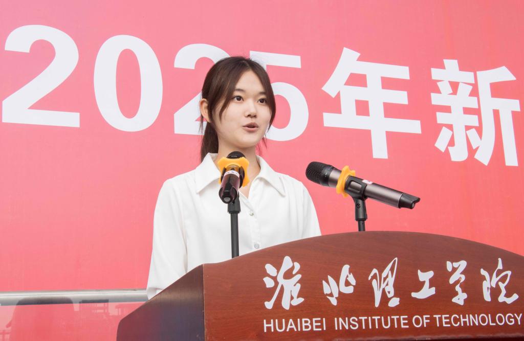 2025级新生代表,来自电子与信息工程学院物联网工程班的学生代表李睿涵同学在发言中表示,作为新时代大学生,未来四年要做“眼里有光、心中有数、脚下有路”的追梦者,在图书馆读书、实验室做实验、社团活动交友、社会实践体察民生,要以饱满热情迎接挑战、谦逊态度渴求知识、坚定信念追逐理想,不负师长期许、父母厚望及青春与时代。