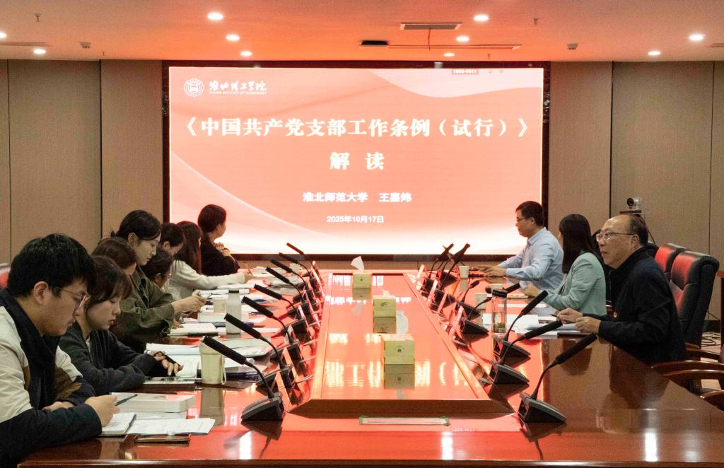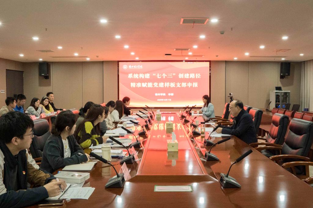 会议上解读和部署beat365唯一官方网站2025年下半年党务工作要点,详细讲解了基层党组织建设、党员发展与管理、党组织生活规范等核心业务,并结合学校实际案例进行剖析。邀请淮北师范大学纪委副书记、纪委办公室主任、历史学博士王嘉炜作《中国共产党支部工作条例(试行)》解读专题报告,他从条例制定的背景意义、框架结构、重点内容以及贯彻落实的实践要求等方面,进行了全面系统、深入浅出的解读,帮助参训人员准确把握条例的精神实质和核心要义,为进一步规范党支部工作提供了明确指引。邀请宿州学院机械与电子工程学院自动化教研室党支部(全国样板支部)书记、双带头人、教研室副主任、博士李娜作系统构建“七个三”创建路径,精准赋能党建样板支部申报——宿州学院自动化教研室教师党支部全国党建样板支部培育创建经验交流专题报告,她从“七个三”创建路径核心内涵入手,结合支部培育至获批全流程,阐述各环节具体做法。同时围绕申报材料撰写、佐证材料梳理等重点,分享实操经验,解析党建与学科建设、人才培养融合路径,为参训人员提供清晰可借鉴的创建思路。