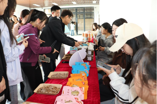 在宣讲环节之外在还设置了“裕安区特色美食品尝”体验区,展示并品鉴了徐集花生糖、六安瓜片茶包、单王瓜蒌子、独山无花果干、苏埠糕点等地道特产。师生们纷纷驻足品尝,进一步感受到了裕安的地方风情与文化底蕴。