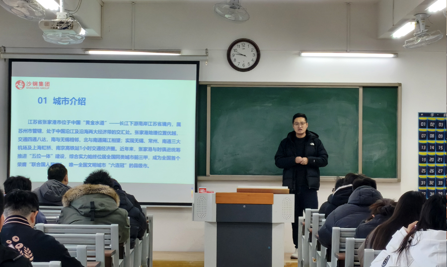 宣讲会上,施程峰经理首先向同学们介绍了公司概况。江苏沙钢集团不仅是全国特大型钢铁企业,也是世界500强企业,国家创新型企业,主要以钢铁为主、资源能源、加工、贸易物流、金融投资、信息科技等为支撑的多元化发展的国际性集团企业。他针对本次校园招聘的岗位需求、职业发展体系、薪酬福利政策等核心信息进行详细解读,在互动交流环节,同学们围绕岗位能力要求、实习培养机制等问题积极提问,现场氛围热烈。