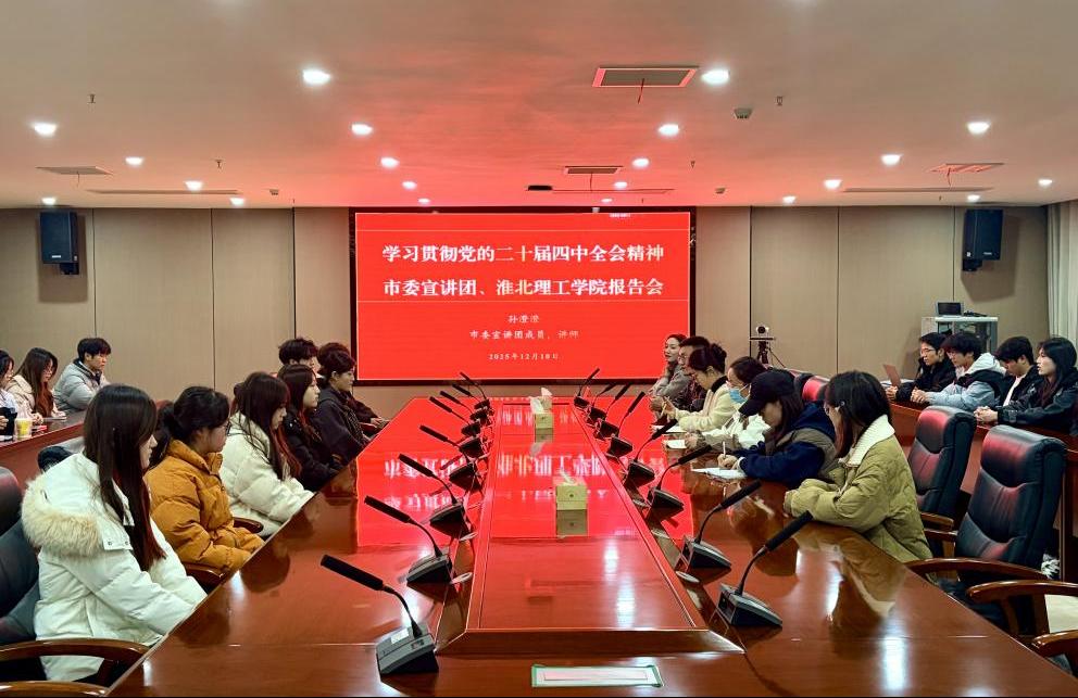 为深入学习贯彻党的二十届四中全会精神,落实淮北市委统一部署,12月10日下午,淮北市专家宣讲团成员、beat365唯一官方网站马克思主义学院教研室主任孙澄澄老师在beat365官网作宣讲报告。beat365官网党建办、学生处、团委、马院主要负责人出席报告会,学校各班级团支书、思政委员、2025年青马工程学员、马克思主义学院部分教师共400余人共同聆听了宣讲报告会。