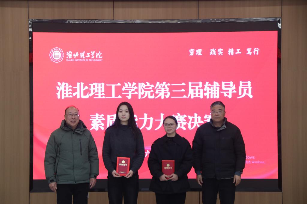 根据基础知识测试、学情熟知、案例研讨、谈心谈话四个环节的综合得分,经济与管理学院徐瑞鲜、王雪芃荣获一等奖,电子与信息工程学院王云月等3名辅导员荣获二等奖,教育学院郭鸿鑫等4名辅导员荣获三等奖。与会评委为获奖选手颁奖。