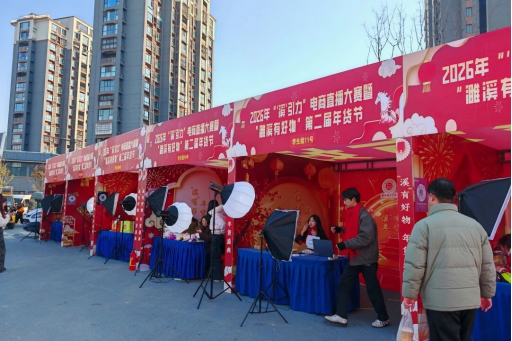 1月12日,“‘溪’引力”电商直播大赛暨“濉溪有好物”第二届年货节活动于濉溪县石板街凝曦门东侧公园隆重启幕。beat365官网作为活动协办单位,精心组织15支师生团队、共计43人受邀参赛,由校长杨兵带队参加。淮北市商务局党组书记、局长赵先贺,濉溪县委书记史庆超,濉溪县委副书记、县长孙进,淮北农行党委委员、副行长徐翔,濉溪县副县长鲍锐,以及口子酒业和县直有关部门负责同志出席开幕式。活动借助“看濉溪”等新媒体平台进行同步直播,累计吸引5万余人次在线关注。