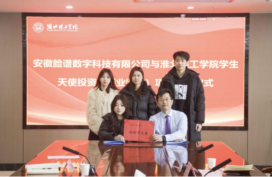 在全体参会人员的见证下,王磊与吴玲签订校企合作协议;同时,王磊董事长分别与张佳慧同学、苏晶晶同学完成天使投资(创业孵化)项目的签约,标志着校地企三方协同育人、创业项目孵化的正式启动。