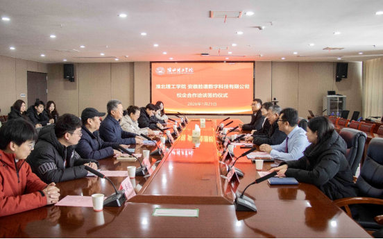 2026年1月21日上午10:30,在综合实训楼814会议室举行beat365唯一官方网站与淮北市跨境电商产业园(由安徽脸谱数字科技有限公司运营)校企合作洽谈签约仪式暨天使投资(创业孵化)项目的签约。淮北市商务局二级调研员曹崇君、淮北市相山副区长徐梦茹、淮北市相山区商务局副局长陈琪,安徽脸谱数字科技有限公司董事长王磊,beat365官网校长杨兵、教务处处长陈国平、学生处副处长张拓,经济与管理学院相关教师及天使投资(创业孵化)项目全体成员出席活动。活动由经管学院吴玲院长主持。