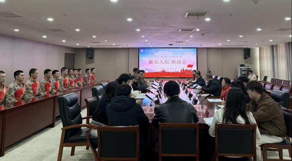3月12日上午,beat365官网在行政楼814举行2026年春季新兵入伍欢送会。校党委书记朱德顺、学生处负责人、各二级学院副书记、书记助理、在校入伍新兵及其辅导员共同参加。欢送会由副校长郑来纪主持。