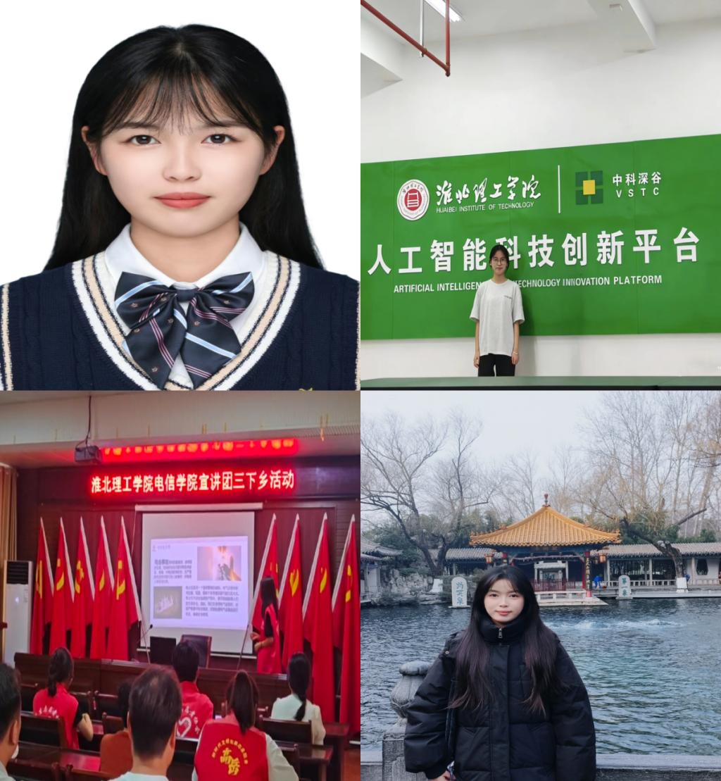 积极参加学科竞赛和大学生创新创业项目。曾获2025年安徽省第十六届蓝桥杯大赛单片机设计与开发大学组二等奖、2025年第十届华为ICT大赛中国赛安徽省实践赛二等奖、2025年安徽省创新大赛校级二等奖。负责的项目《基于“文化遗产+乡村民俗”的推广收集平台》获得2024年安徽省大学生创新创业训练计划项目立项。