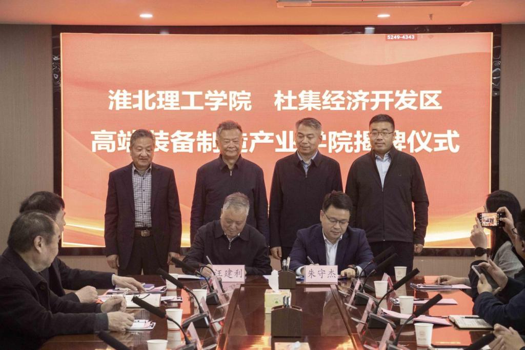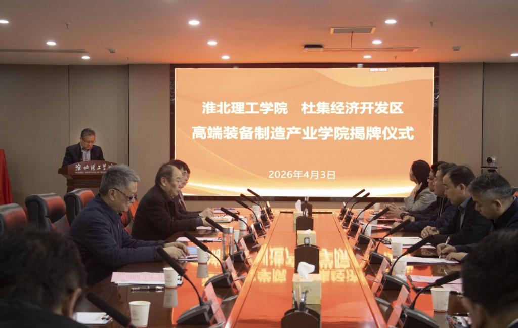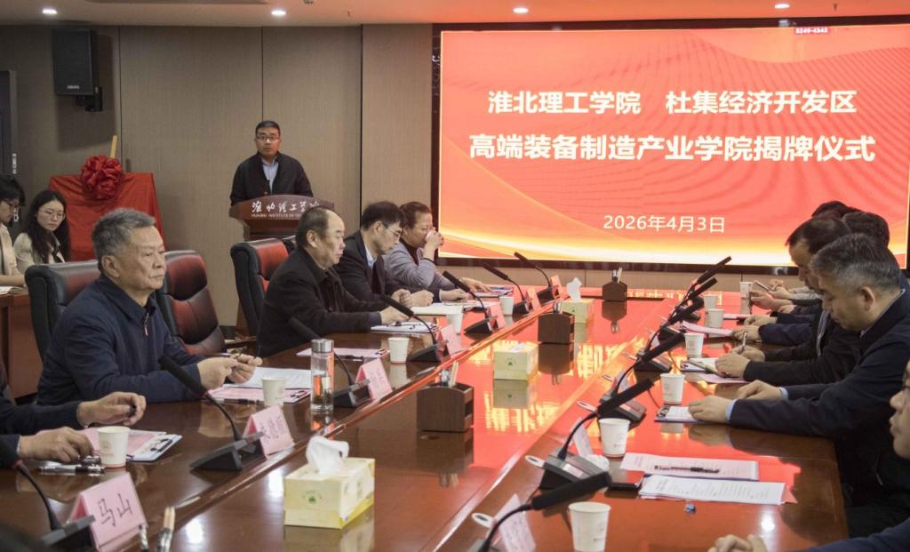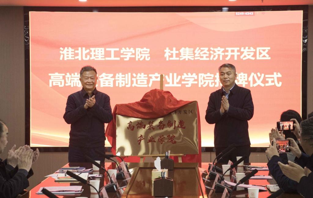 为深入推进产教融合,服务地方装备制造产业高质量发展,4月3日下午,beat365唯一官方网站与杜集经济开发区高端装备制造产业学院揭牌仪式在学校实验综合楼814会议室隆重举行。淮北市政协副主席、杜集区委书记尹农纲,区长魏辉,副区长郭守厚,区工信局局长、杜集经济开发区管委会主任朱守杰,管委会副主任段琨琨;安徽省矿业机电装备有限责任公司、淮北合众机械设备有限公司、淮北市中芬矿山机器有限责任公司等杜集区骨干企业领导;学校校长杨兵、党委书记朱德顺、副校长汪建利,相关部门和二级学院负责人、师生代表共100余人出席仪式。揭牌仪式由汪建利主持。