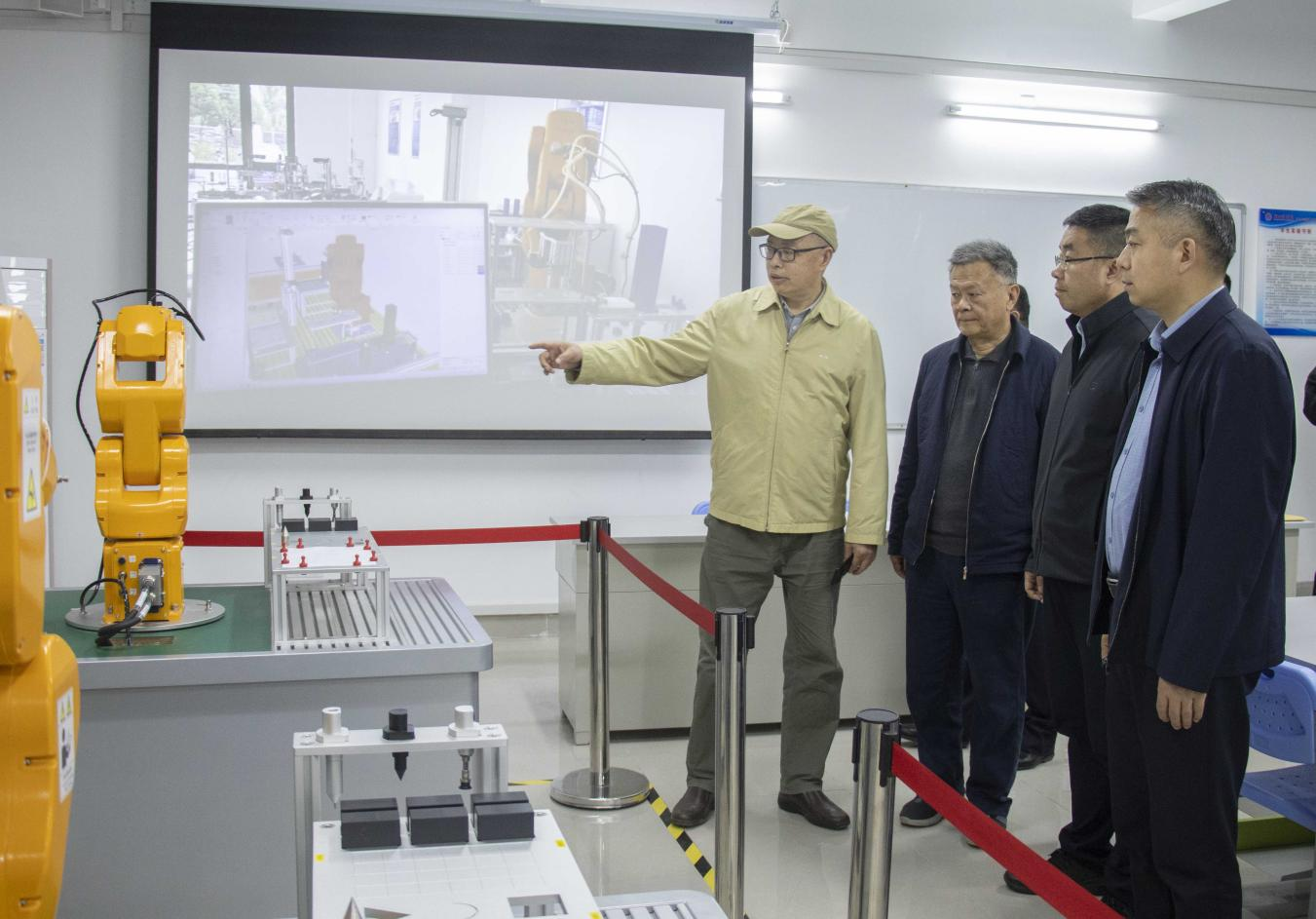 仪式开始前,杜集区委、区政府领导和企业代表在学校领导和相关单位负责人的陪同下,实地参观了华为ICT现代产业学院、京东数智产业学院及机电与建筑工程学院实验室。参观过程中,学校相关单位负责人重点介绍了各产业学院及实验室的建设成果、教学科研平台及校企合作模式。双方围绕产教融合、人才培养、技术应用等方面进行了深入交流。