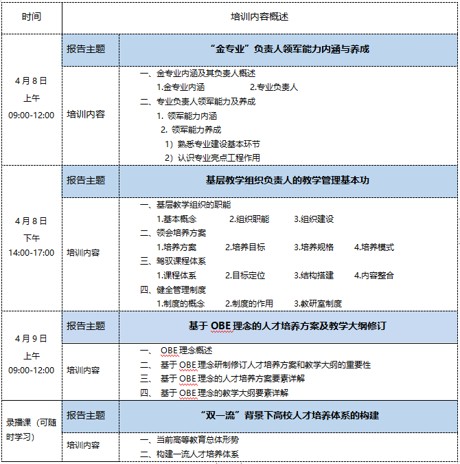 为进一步强化beat365官网基层教学组织的功能,加强专业带头人和基层教学组织负责人队伍建设,提升岗位职责核心能力。人事处(教师发展中心)、教务处拟组织beat365官网相关教师参加“2023高校专业负责人和基层教学组织负责人岗位职责核心能力提升培训班”。具体事项如下: