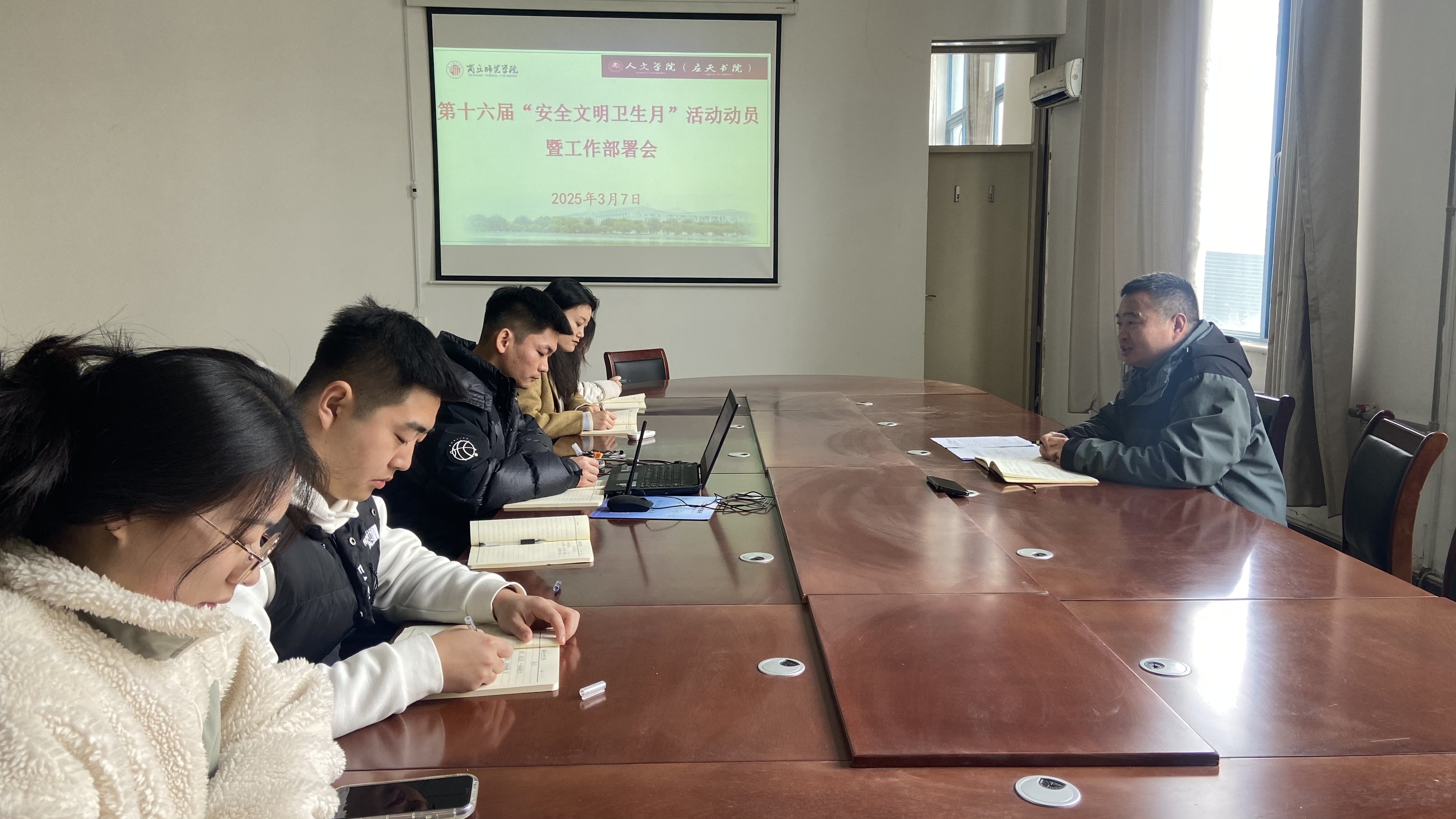 3月7日上午,今年会官网在汉梁楼208会议室召开第十六届“安全文明卫生月”活动动员暨工作部署会。学院党委副书记卢忠雷主持会议并作动员讲话,全体辅导员参加本次活动。