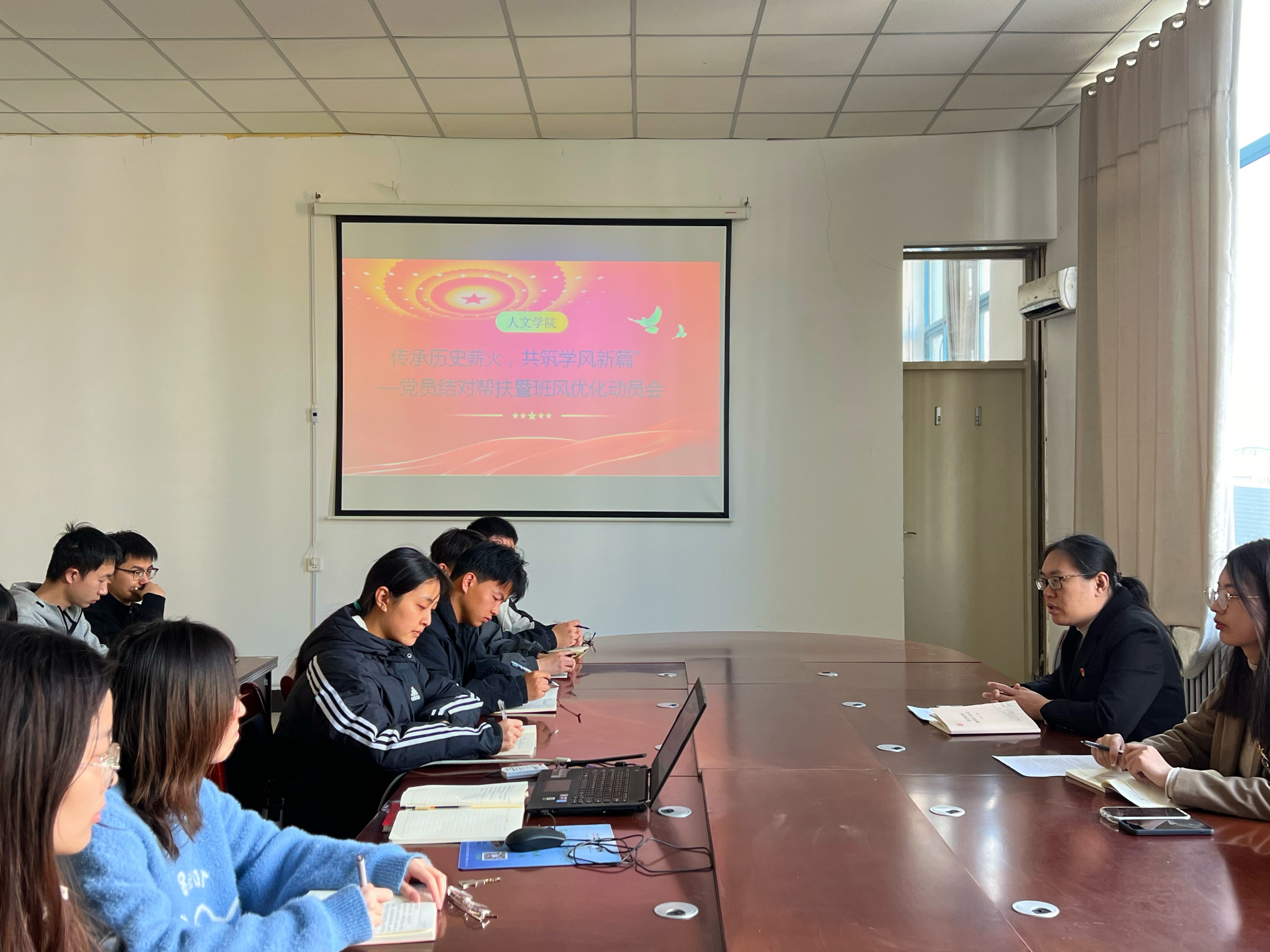 为响应安全文明卫生月号召,强化学风建设,推进文明养成教育,3 月 17 日,今年会官网学生第三党支部于汉梁楼 208 会议室举办了《传承历史薪火,共筑学风新篇 —— 党员结对帮扶暨班风优化动员会》。此次活动由党支部书记许瀛文牵头,支部全体党员积极参与。活动伊始,许瀛文书记强调了学风建设对学生成长及学院发展的关键意义,点明党员在班风优化中应发挥的模范带头作用。随后,详细阐述党员结对帮扶计划,鼓励党员与普通同学一对一交流,从学业辅导、生活引导等多方面助力,提升班级整体风貌。现场,党员们热情高涨,纷纷表示将全力以赴投入帮扶工作。