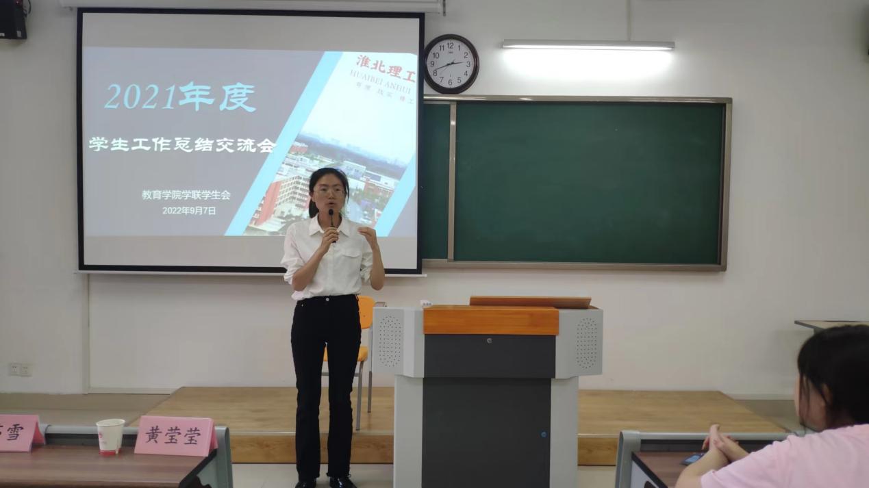 新征程扬帆起航,新使命重任在肩。为进一步加强学生干部团队建设,总结上学年团总支、学联学生会工作的经验,为新学期工作的顺利开展打下基础。教育学院于2022年9月7日下午14时30分在第二教学楼416教室召开2021-2022年度院团总支、学联学生会工作总结交流会。教育学院团总支负责人黄莹莹、辅导员彭慧敏、侯莉萍、何茹雪,2021级班长、团支书及学联学生会全体成员参加本次交流分享会。