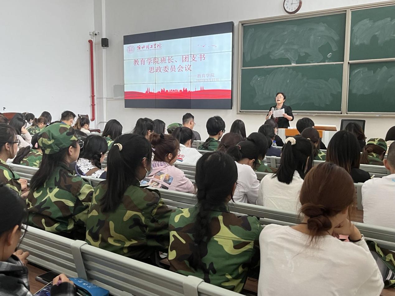 会上,副书记孟向红做了动员讲话。她指出,在党的二十大即将召开的前夕召开全院各班级主要学生干部会议,目的是希望大家明确自身职责所在,她肯定了各班班长、团支书在班级建设、班级活动和学院的各项学生管理中的巨大推动作用,强调学校在各班设立“思政委员”的目的是为了更好地落实“立德树人”的根本任务,进一步加强大学生思想政治教育,思政委员的工作职责是要配合班长、团支书做好本班同学的思想政治工作和安全稳定工作,关注本班同学的思想动态、情绪变化,关心班级学生的意识形态倾向,及时向带班辅导员反馈报告班级情况。希望各班级的班长、团支书、思政委员团结协作,在学校教育教学和各项管理中更好地发挥桥梁纽带和表率作用,做好各班的“青年大学习”、“思政青年说”等方面组织协调工作,进一步推动思政课程与课程思政同向同行,提升思想政治教育的针对性和实效性。