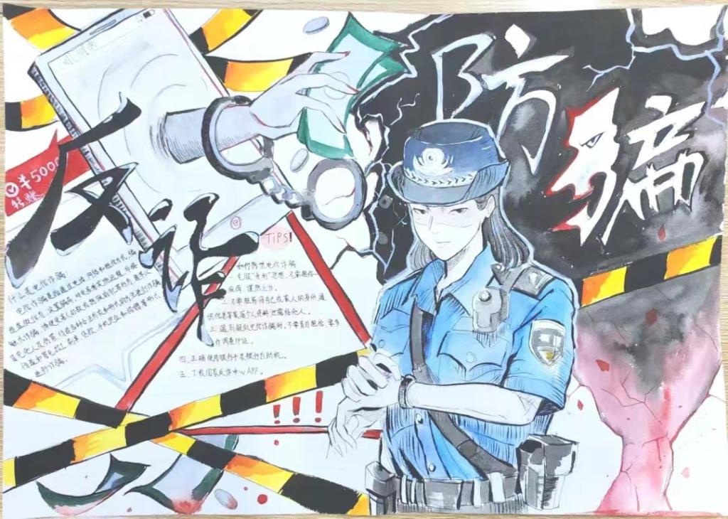 宣传增强防范之心,画纸营造反诈氛围。教育学院于10月上旬开展“反电诈,防电诈”手抄报活动,我院青年学子积极响应,纷纷投稿,共收到近300件作品。通过团总支微信公众号投票、评委老师打分等多轮选拔,共遴选出18份获奖作品,其中一等奖3名,二等奖5名,三等奖10名。21级学前教育1班华蕾蕾的作品以国家反诈中心标志为原型制作手抄报进行知识宣传,呼吁同学们要做到人人下载安装国家反诈中心APP。22级汉语言文学4班刘嘉诚的作品则通过顺口溜和标语的形式告诫大家要时刻紧绷防范之弦,形式新颖有趣。同学们围绕反电诈、防电诈等相关知识,以独特的视角创作出生动形象、寓意深刻的反电诈手抄报,生动再现了网络诈骗层出不穷的手段及应对方法,有力地提高了全院师生反诈骗意识。