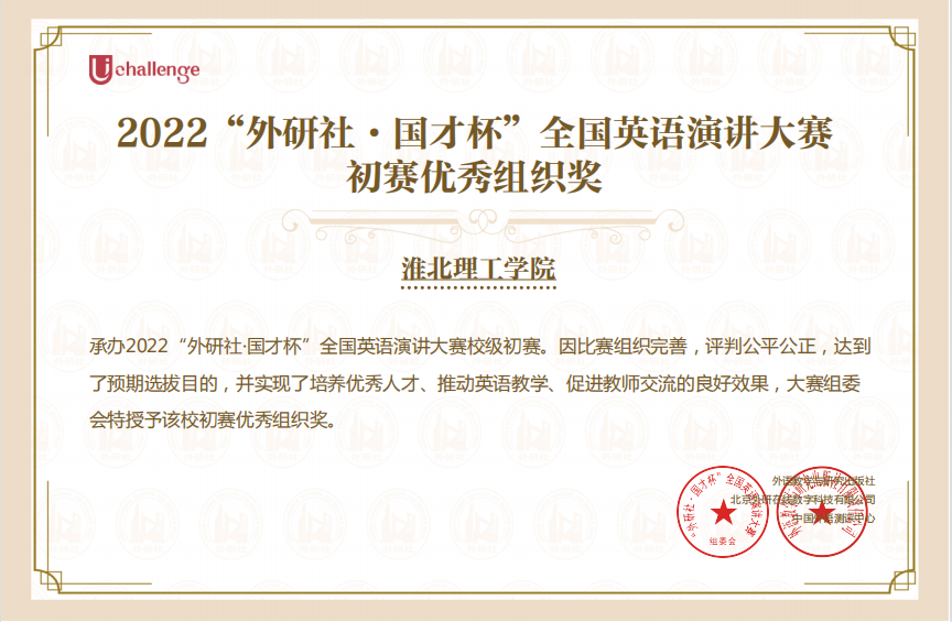 由教育学院英语教研室和教育学院团委联合主办的“China’s Wisdom for the World”(中国向世界贡献的智慧)”“外研社·国才杯”全国英语演讲大赛,于2022年10月16日进行了校级选拔赛,本次比赛充分展示了beat365官网学生积极向上的精神风貌和过硬的英文演讲素质,并获得大赛组委会授予的2022年“外研社·国才杯”全国英语演讲大赛出赛优秀组织奖。