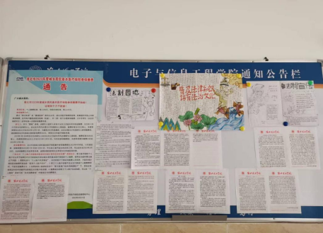 为了弘扬法治精神,推进依法治国的进程,深入贯彻党的二十大精神,创建学风、校风优良的文明校园,电子与信息工程学院开展了一系列以“普法、修德、遵纪,创建文明校园”为主题的系列活动。