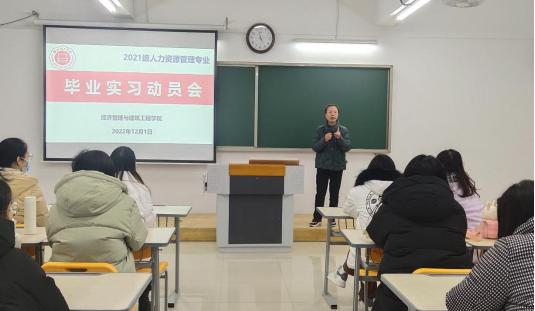 为推进2023届专业实习工作的顺利开展,引导学生做好实习前的各项准备工作,使同学们更加明确实习任务和意义,统一思想认识,真正在专业实践中锻炼,成长。2022年12月1日,经济管理与建筑工程学院召开2023届专业实习动员大会。实习动员大会按照不同的专业分五个会场进行,院长吴玲、学院各教研室主任、毕业实习指导老师、相关辅导员和2023届毕业生参加本次动员大会。