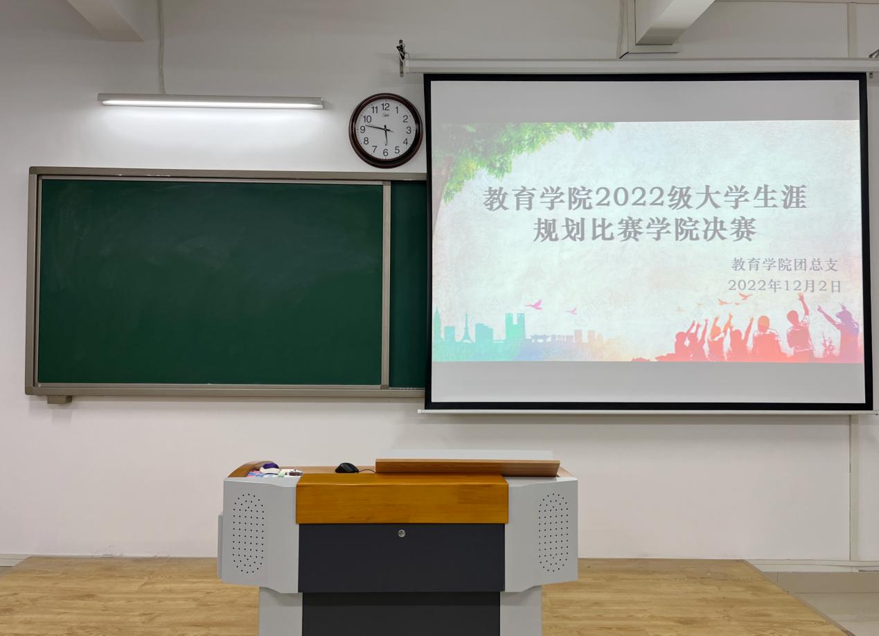为引导同学们树立正确的人生观、价值观、成才观,增强其求实创新、励志图强的意识,科学规划自己的大学生涯,教育学院自10月中旬以来在全体2022级普通本科学生中开展了“大学生涯规划设计大赛”活动,活动得到了同学们的积极响应,同学们对自己的大学期间的学习生涯做了认真规划,并在班级初赛上进行了PPT展示。12月2日下午,在2号教学楼410、411、412教室分组进行了“2022级普本学生大学生涯规划设计大赛”决赛,决赛评委由辅导员老师担任。