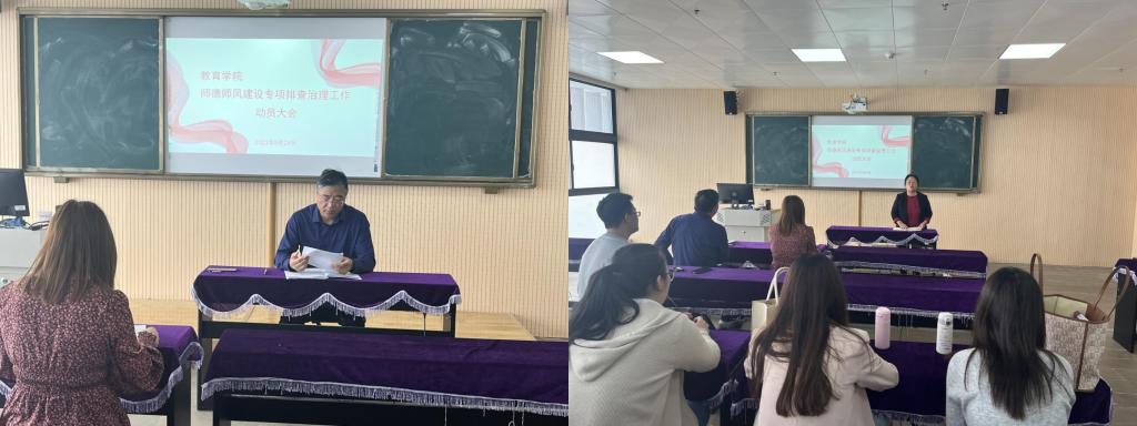 为进一步加强师德师风建设,增强教师立德树人的使命感和责任感,5月24日,教育学院教工党支部召开了师德师风专项排查治理工作的动员大会,教育学院党总支书记王家云同志、教育学院党总支副书记孟向红同志及全体党员教师出席会议,支部书记马香玉同志主持此次会议。