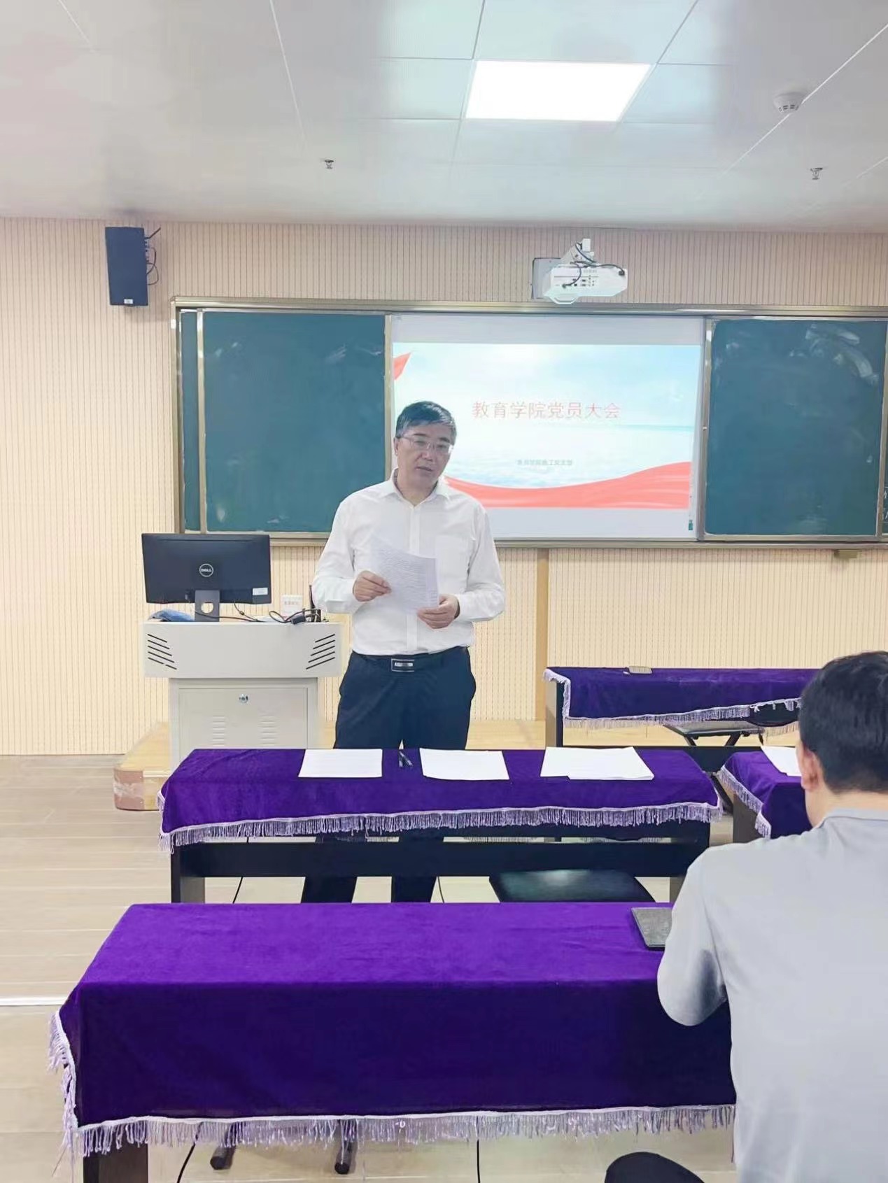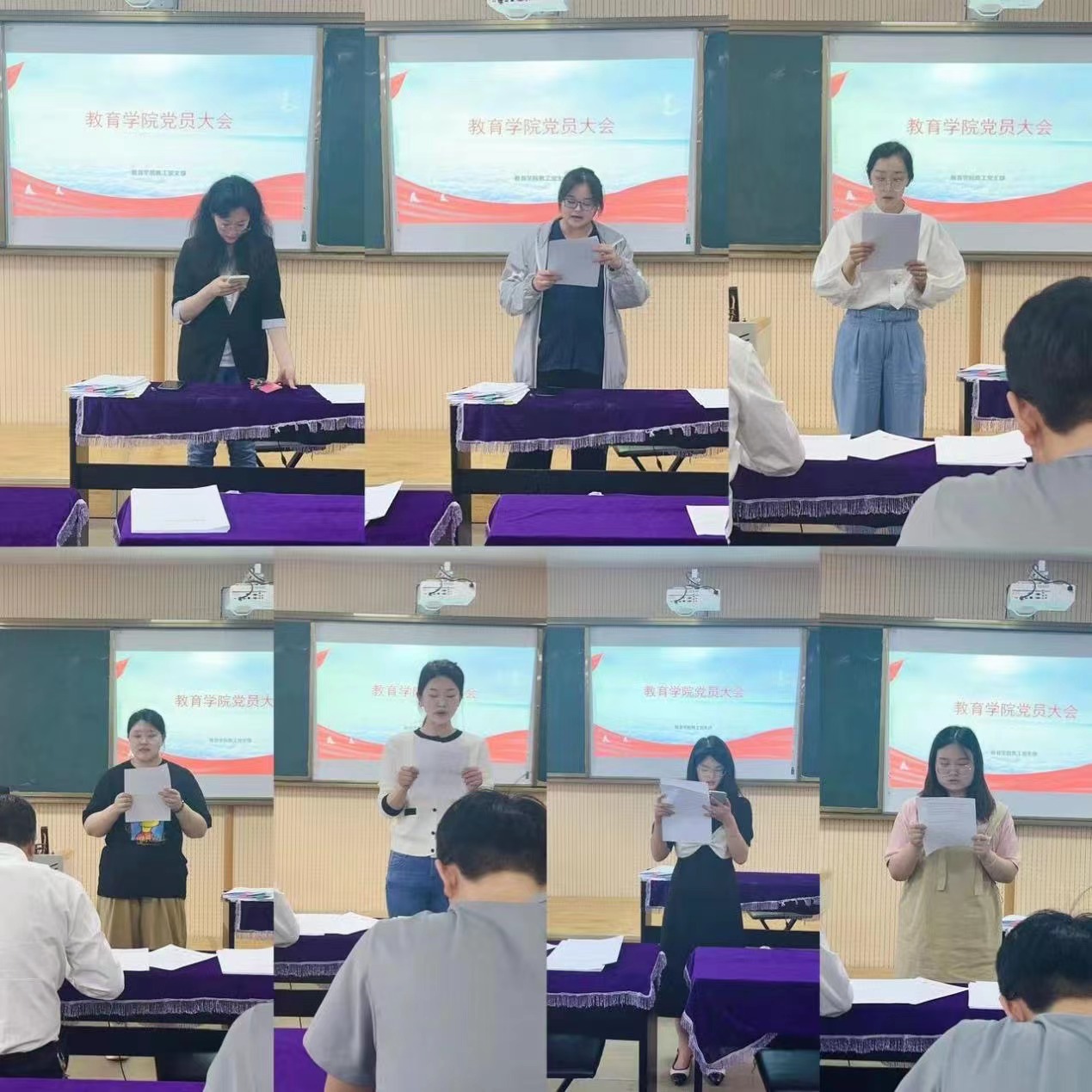 为进一步加强基层党组织队伍建设,吸收优秀青年力量加入到党员队伍中来,教育学院教工支部在艺术楼301室召开了党员大会。本次大会主要讨论接收梁芬奇等7位发展对象为预备党员相关事宜,会议严格按照党组织接收预备党员的程序进行。全体正式党员27人和预备党员2人参会。会议由党支部书记马香玉同志主持,教育学院党总支书记王家云同志到会指导。