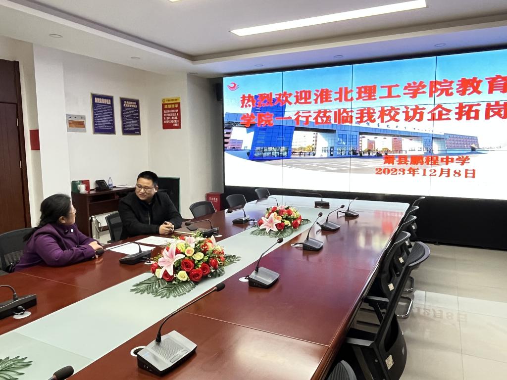 为加强校地、校企交流合作,广泛开拓毕业生实习、就业渠道和岗位,12月8日,教育学院分管副书记孟向红、书记助理黄莹莹、2024届毕业班辅导员任子慧、辅导员任若晨,前往萧县鹏程中学(衡水一中分校)开展访企拓岗调研活动。