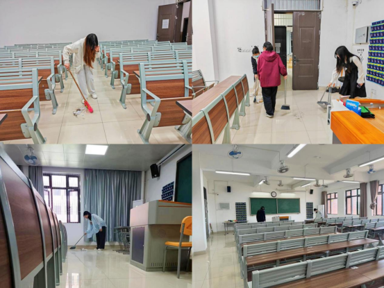 劳动教育周期间,为营造整洁良好的教室环境,教育学院各班级积极安排学生对固定教室及卫生责任区进行打扫。同学们分工明确、齐心协力,对教室地面污渍和遗留垃圾集中清理,共同营造出干净、舒心的学习环境。