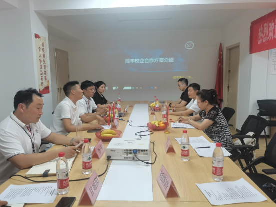 安徽顺丰速运有限公司人力资源部副总监任家宇以及淮北分公司的各位领导对吴玲院长一行表示热烈欢迎,随后任家宇详细介绍了顺丰校企合作校企合作方案。吴玲对顺丰速运的校企合作方案表示肯定,同时详细介绍了学校发展状况以及经济与管理学院的现有专业以及人才培养模式,校企合作暨实习基地的建立也将为学生提供一个宝贵的平台,用以实践创新、锻炼各项能力。这一基地的建成,将促进学生综合素质的全面提升,增强他们在就业市场上的竞争力,希望能以这次校企合作为新的起点,共同发展,为产教研提供更广阔的平台。