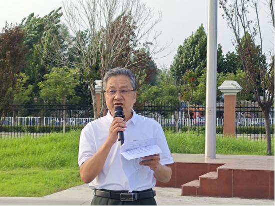 仪式上,朱德顺书记首先表达了对全体学生寄予的殷切期望,建国75周年不仅是历史的回顾,更是未来的展望,希望大家积极带动周围同学的学习进步,从而推动学院的高质量发展,进而以实际行动为祖国的发展贡献自己的力量。他希望大家能够以昂扬的姿态、饱满的热情迎接新学期的挑战,为实现中华民族伟大复兴的中国梦贡献自己的智慧和力量。