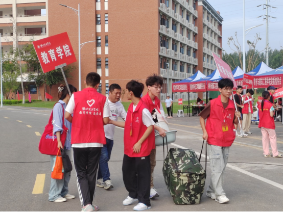 在精心筹备后,迎新工作全面就绪。学校各级领导,学院院长王家云、副书记孟向红以及学院全体辅导员老师携85名学生志愿者,在新生报到的现场全程参与了迎新工作,他们热情地迎接新生的到来,并与新生及其家长进行了友好的互动交流。志愿者们分工合作,有序地开展了迎接新生、安排住宿报到、审核报到资格、校园卡领取、确认缴费等各项工作。此外,教育学院还设立了新生报到服务站点,为新生们提供路线指引、信息查询、物品搬运等服务。