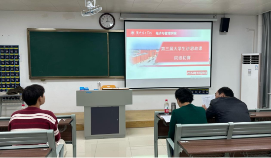 为严格落实beat365唯一官方网站关于开展第三届大学生讲思政课比赛活动的通知,进一步加强我院学生的思想政治素养,培养大学生正确的世界观、人生观和价值观,推动学院思政教育创新发展。10月9日下午,经济与管理学院举办第三届大学生讲思政课院级初赛,特邀马克思主义学院银龄专家徐建龙、边双燕、沈洪英、董萍华、梁保安,专任教师孙玉杰及学院3位专职辅导员担任评委。本次比赛共有21组选手报名参加,比赛分3个会场同步进行。