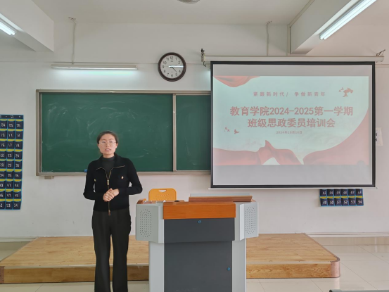 为进一步加强大学生思想政治教育工作,提高班级思政委员的业务能力和综合素质,进一步拉近师生距离,高效、动态掌握学生思想状况,10月16日下午2时,教育学院在2号教学楼423室召开学院班级思政委员培训会,会议由教育学院书记助理黄莹莹主持,分管副书记孟向红、全体辅导员老师以及116个班级思政委员参加会议。